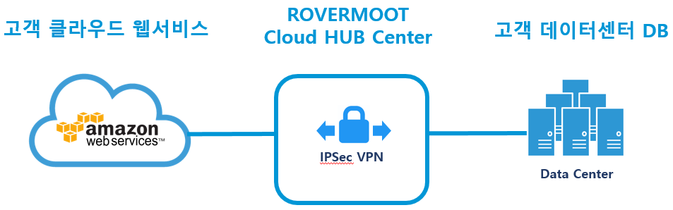 B사는 AWS에 웹서비스를 구축하고 IDC의 DB 서버와 연결하기 위해 로버무트(주)의 클라우드 허브 서비스를 도입하였습니다.