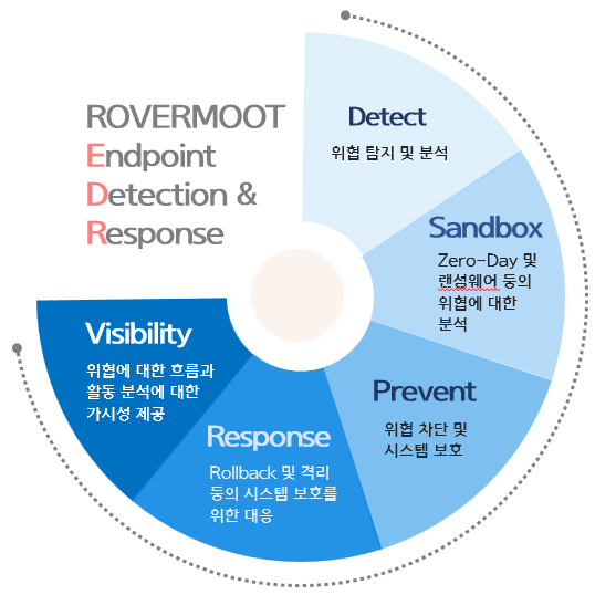 저희 로버무트㈜에서 제공하는 EDR 솔루션은 차세대 백신 엔진을 통해 위협에 대한 탐지와 차단 또는 격리 처리하는 기본적인 기능 외에 아래와 같은 EDR 기능을 지원합니다.