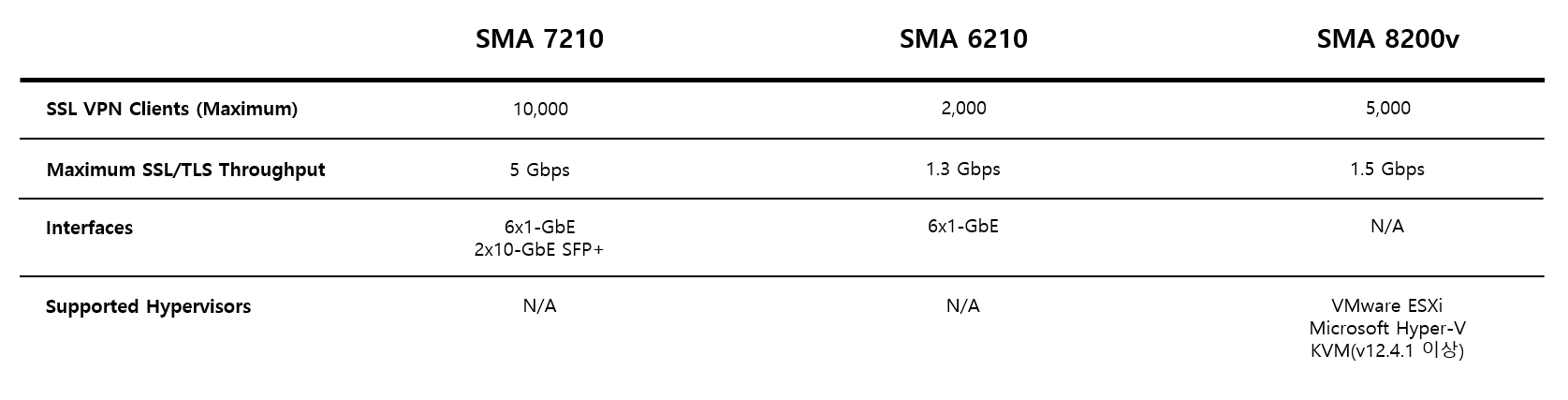 원격 액세스 제품 라인업(Secure Mobile Access, SMA)