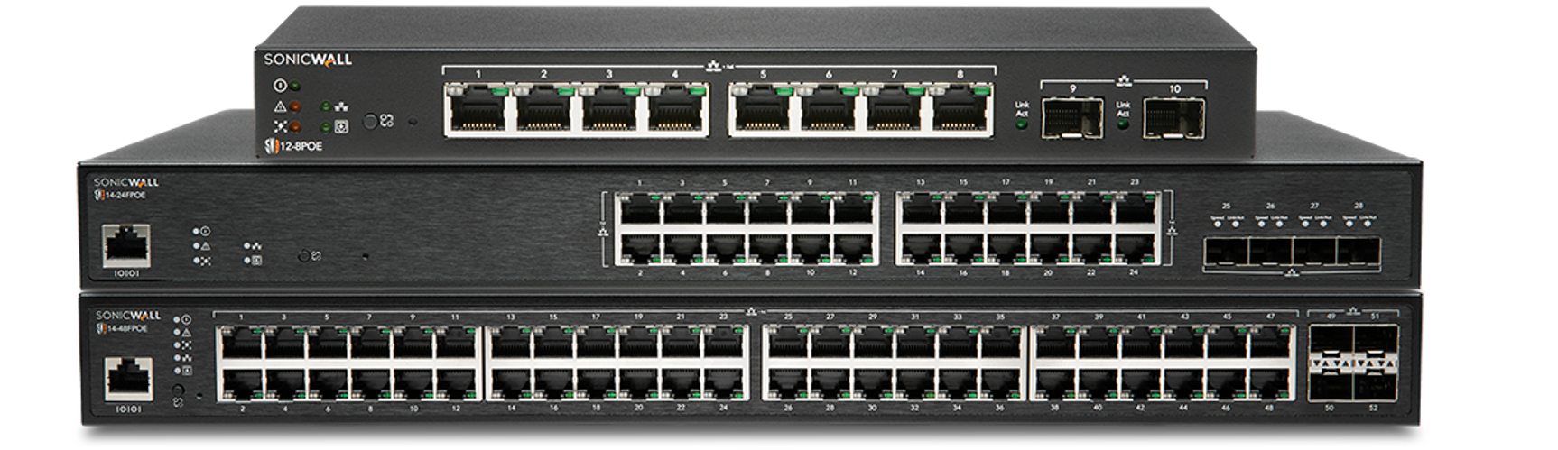 SonicWall 스위치는 고속 스위칭을 제공하여 비즈니스에 필요한 안전한 고속 연결을 일관되게 제공할 수 있으며, 더 많은 장치를 추가하고 SaaS 확산을 유지하며 네트워크 및 예산을 보호합니다. 또한 통합 보안 태세를 통해 중소기업 및 Software Defined Branch (SD-Branch) 구축에 이상적인 스위치로 변화하는 네트워크 및 보안 환경에 대응할 수 있습니다.