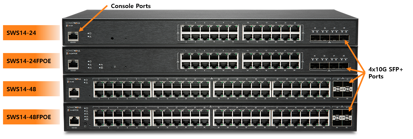 에너지 효율 설계SonicWall 스위치는 에너지 효율적인 설계로 소형 폼 팩터로 제공됩니다. |