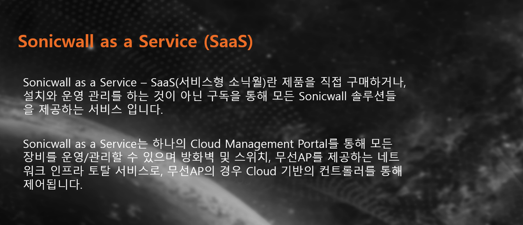 차세대 방화벽 Capture ATP(Sandbox) 및 Anti-Virus, Web Filtering, Application Control 등의 다양한 보안 기능 제공. 트래픽 복호화 기술을 통해 암호화 트래픽 내 악성파일을 탐지 및 차단하는 기능 제공. 스위치 L2 스위치로 1G 및 10G를 지원하는 고속 네트워크 스위칭을 제공. 무선 Access Point Wifi 6를 지원하는 소닉월 최신 무선 제품 제공. Cloud 기반의 컨트롤러를 통해 정책 설정, 인증 및 로밍 등의 구성 지원. Cloud Network Security Manager & Wireless Network Manager Cloud 기반의 통합 관리 서비스. SaaS를 통해 제공되는 방화벽 및 스위치, 무선AP를 통합 관리하고, 네트워크에 대한 가시성을 제공. 무선 AP의 Cloud 기반 컨트롤러 역할 수행. SonicWall과 관련된 다양한 콘텐츠를 확인해 보세요.