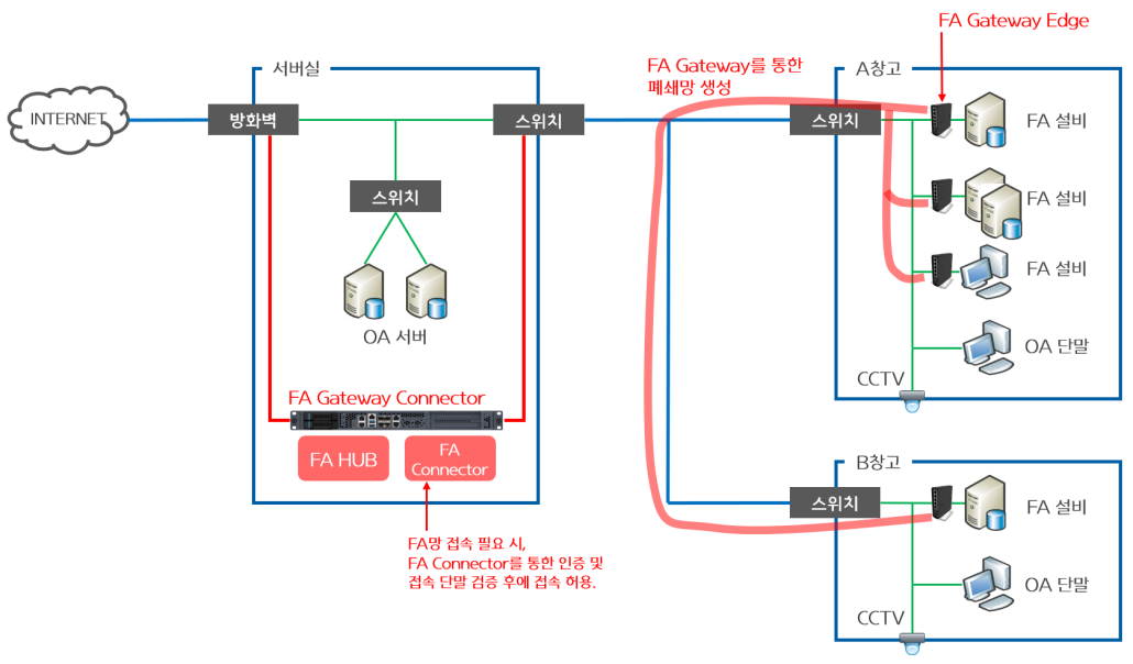 - FA Hub : FA Gateway Edge를 FA Hub와 연결하여 폐쇄망을 구성.